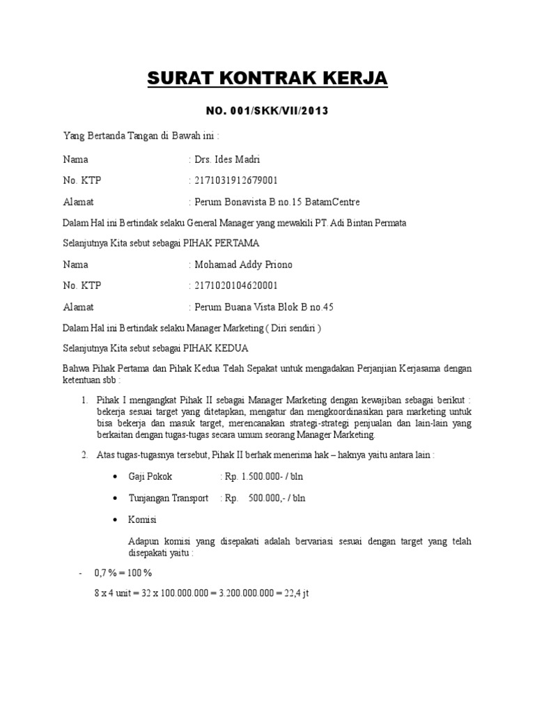 Kontrak Kerja Habis Tapi Masih Bekerja from 1.bp.blogspot.com B.pihak kedua adalah pihak penyedia 6.latar belakang latar belakang ditandatanganinya kontrak yang meliputi informasi: Surat perjanjian kontrak kerja proyek pembangunan rumah tinggal pada hari ini, kamis tanggal enam september tahun dua ribu sembilan, yang bertanda tangan di bawah ini: A.bahwa telah sesuai dengan dokumen Apr 12, 2021 · pt mayora indah tbk bergerak dalam bidang makanan dan minuman olahan. Customize and download an employment contract template. Telah berdiri sejak 17 februari 1977 telah tercatat di bursa efek jakarta sejak 4 juli 1990. 5.para pihak dalam kontrak a.pihak pertama adalah pihak ppk; The employment agreement form will give your new employees a clear understanding of your hiring terms from day one.